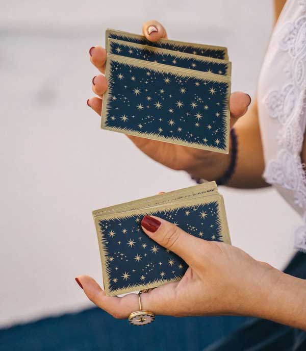 Con la baraja limpia de energías externas, la Terapeuta establece una conexión intuitiva con el mazo de cartas y canaliza también con la energía de la persona que va a hacer la consulta. Se formulan las preguntas que se quieren hacer referente al tema/s y la Terapeuta baraja las cartas y las coloca de una marera específica, conocido como “una tirada”. Cada carta tiene su propio simbolismo y significado característico relacionado con temas de trabajo, amor, dinero, salud, etc… y al estar la Terapeuta en conexión con las cartas y la energía del consultante, hace la interpretación en relación con las preguntas formuladas.